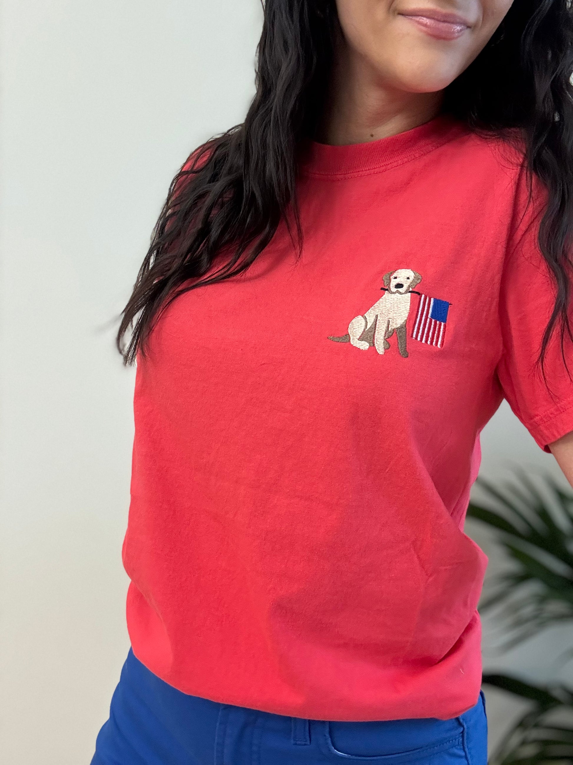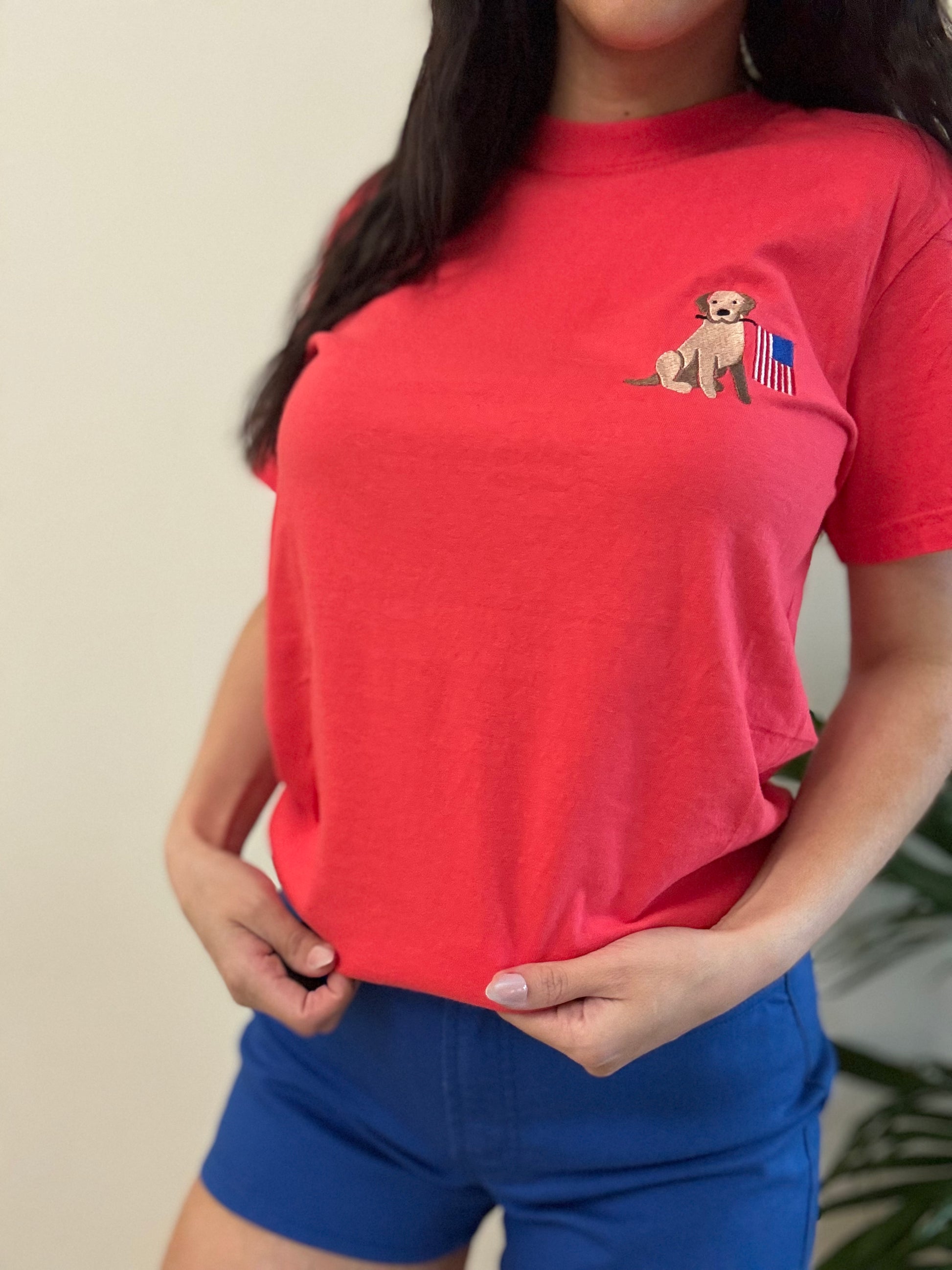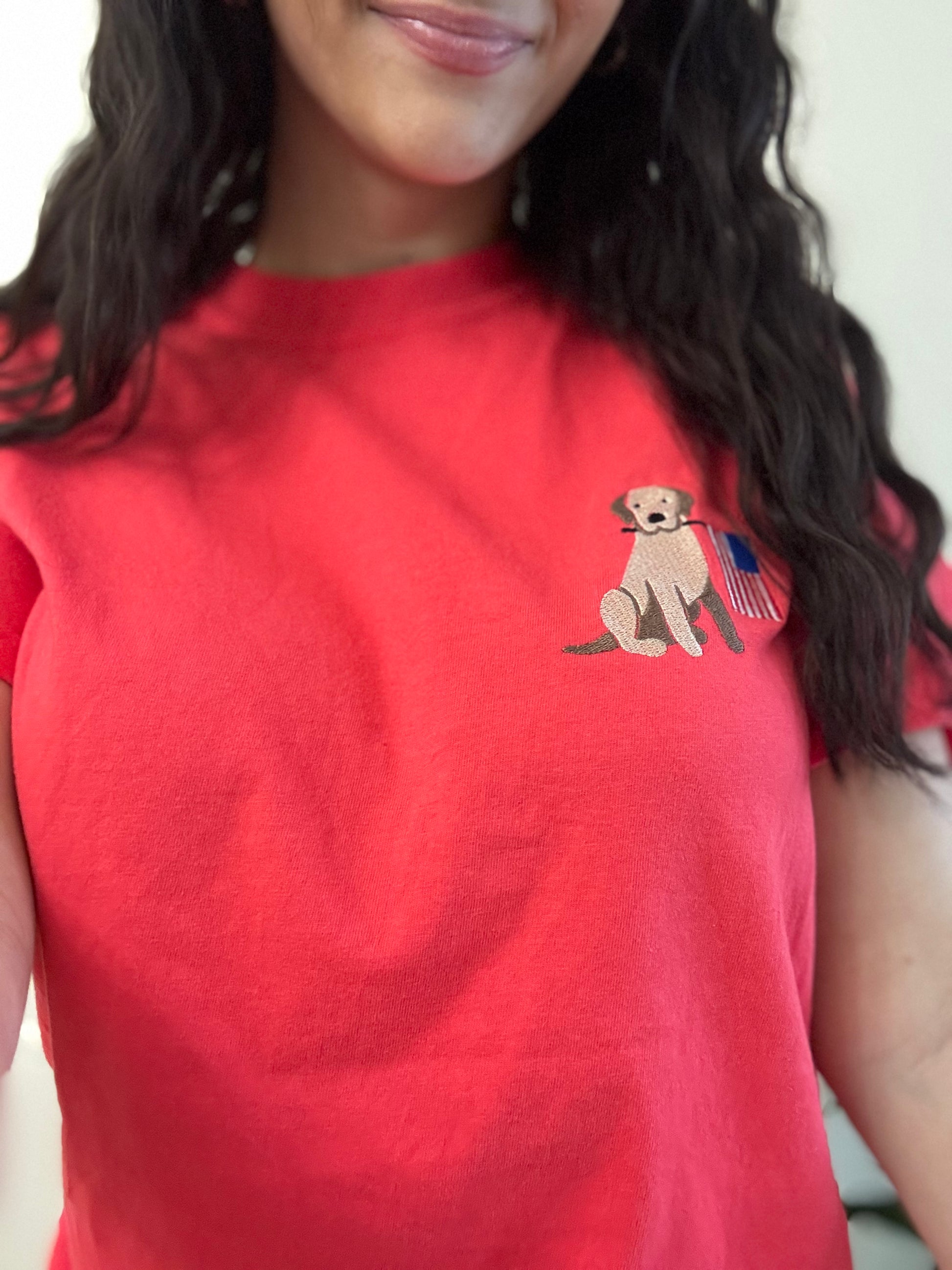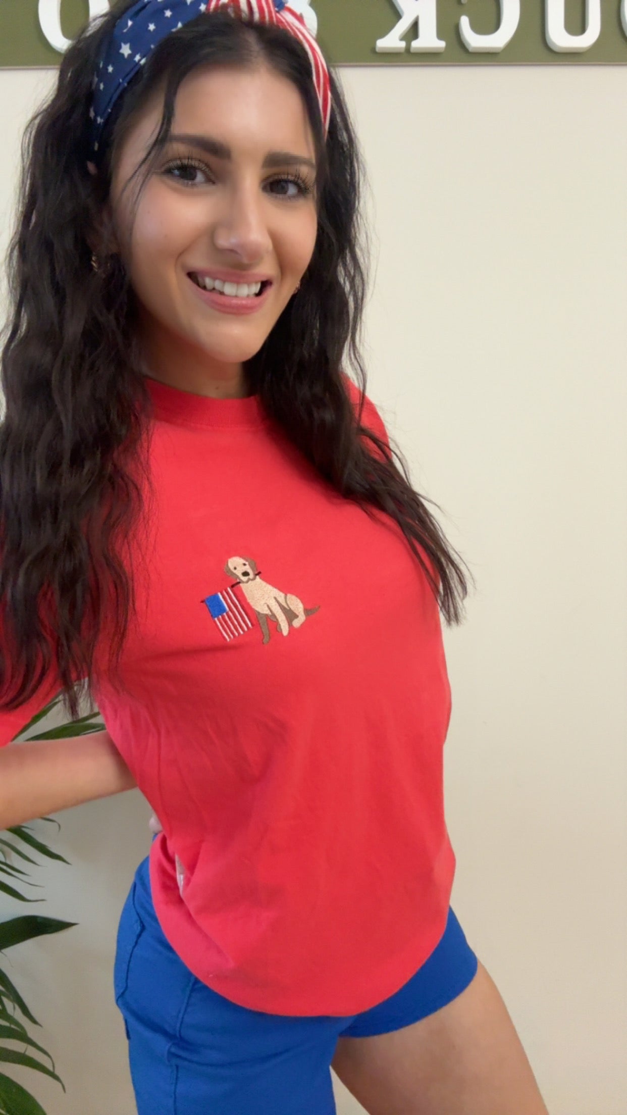 Get ready to celebrate Independence Day with this American Pup embroidered graphic tee!
