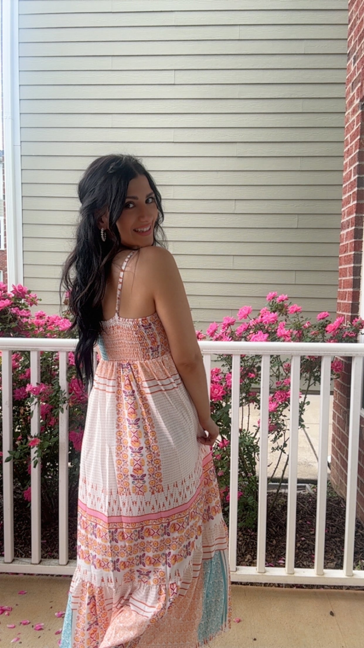 This Boho Patchwork Sundress adjust to your perfect fit with the adjustable straps. Boasting an eye-catching Bohemian print with gorgeous colors, it is ideal for festivals and outdoor events. The light/airy and full-length dress delivers a touch of elegance to your wardrobe. The square neck and high waisted cut is also so flattering.