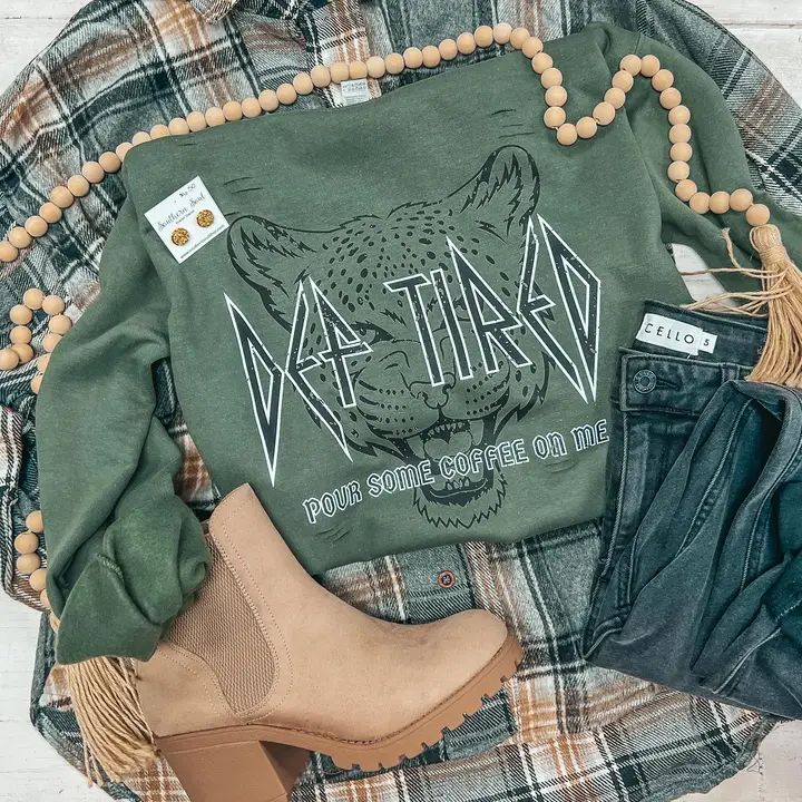 Embrace cozy comfort this fall with the Def Tired Sweatshirt. Featuring a charming green hue inspired by autumn’s natural palette, this sweatshirt captures the relatable feeling of needing a coffee boost. Its soft fabric and relaxed fit make it perfect for chilly days when you want to stay warm and stylish. Ideal for casual wear, this unique piece combines comfort with a playful message that resonates with anyone who’s ever felt “def tired.”