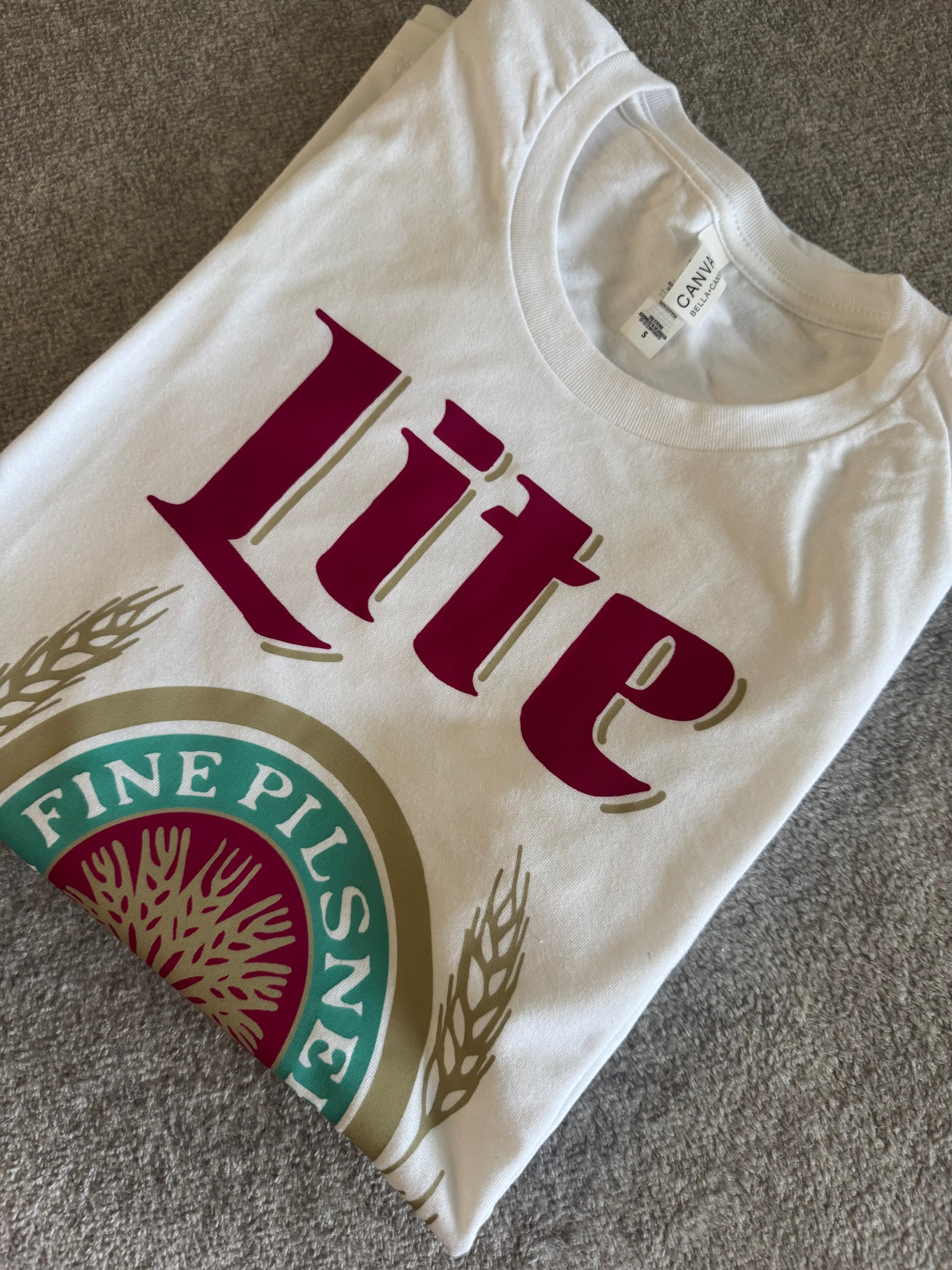 Enjoy casual comfort with this Lite Beer Graphic Tee, crafted from 100% soft Bella Canvas cotton. Its playful design adds a fun twist to your everyday look, perfect for relaxing weekends or casual outings. Lightweight and breathable, this tee keeps you cool while showing off your laid-back style.