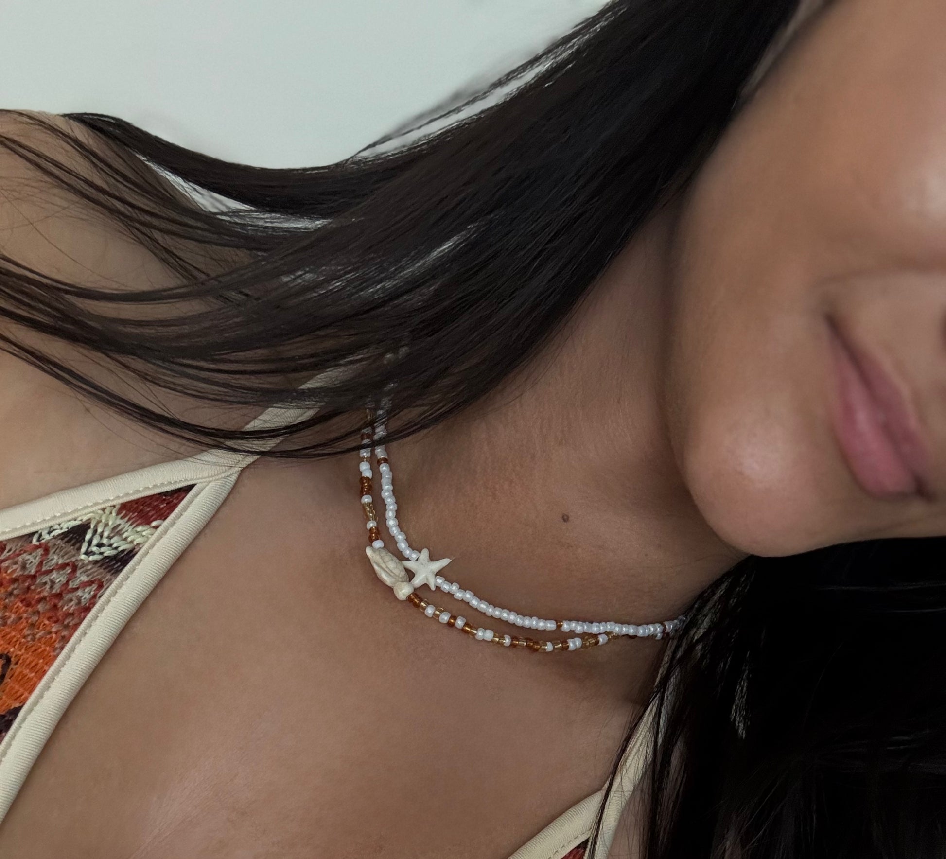 Elevate your beach style with our Ocean Bead Necklace. Made with high-quality materials, this necklace is the perfect accessory for your next seaside adventure. Enhance your beach look with this stylish and versatile piece.