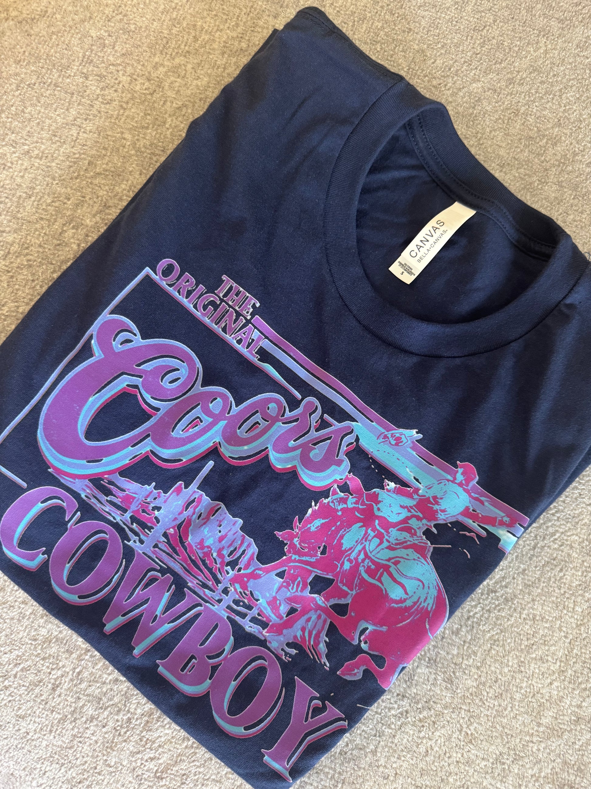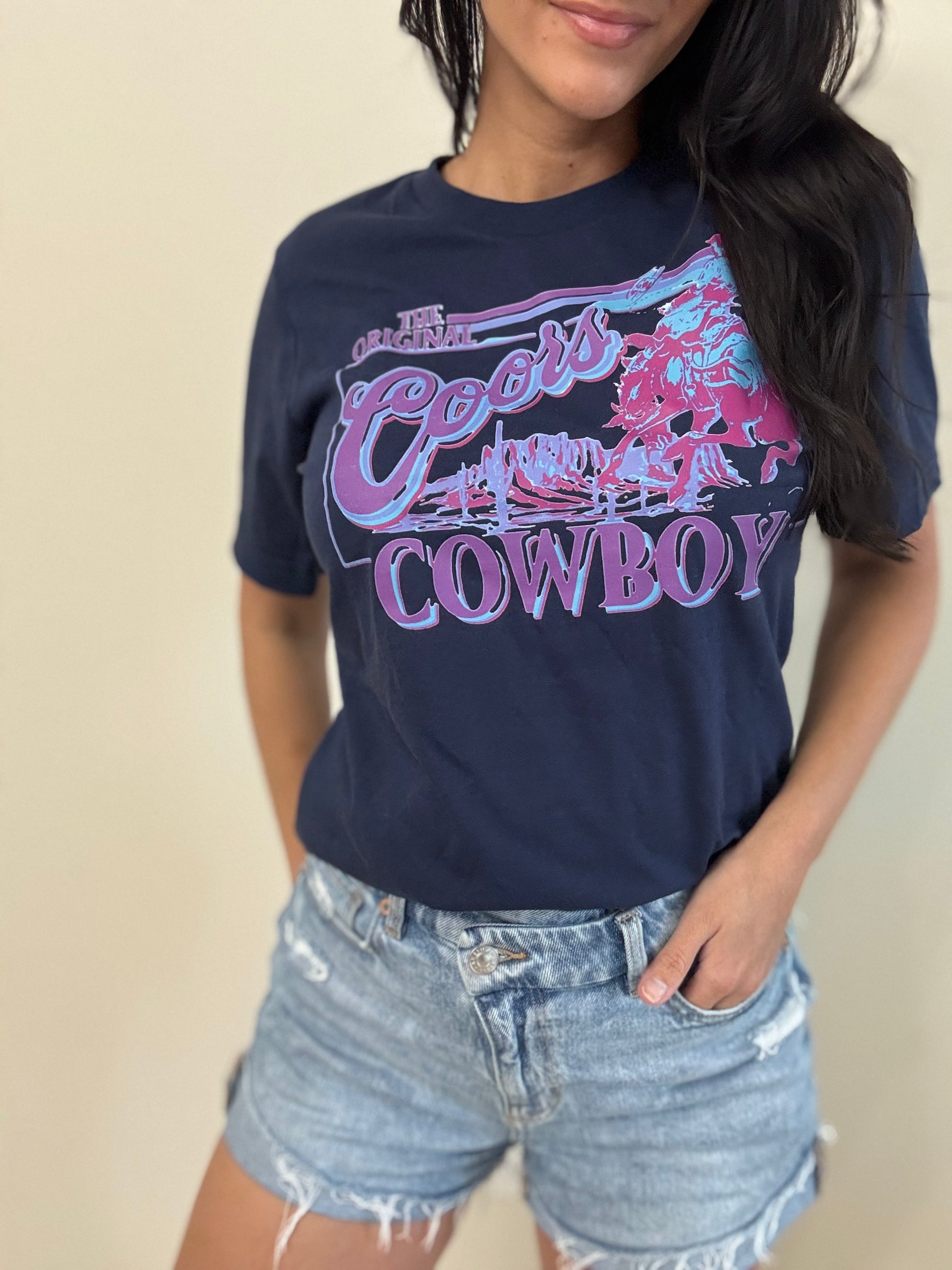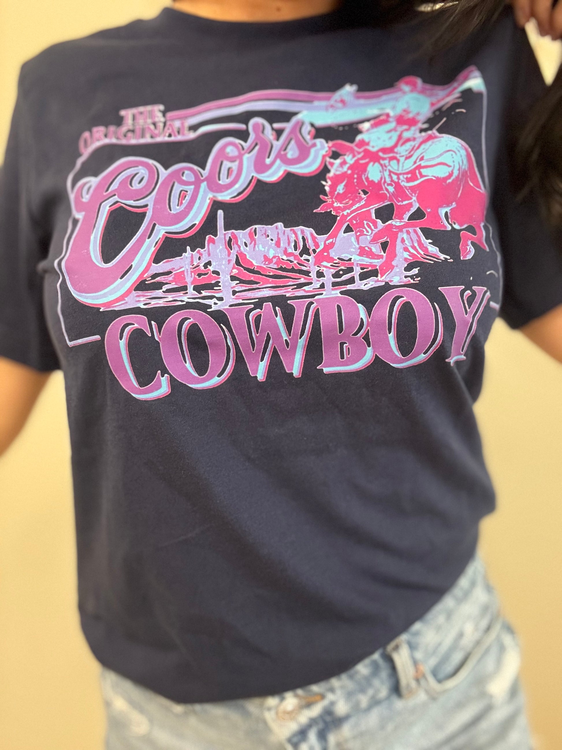 Stand out with this vibrant neon Coors Cowboy graphic tee, crafted from 100% cotton by Bella Canvas for a soft and comfy fit.