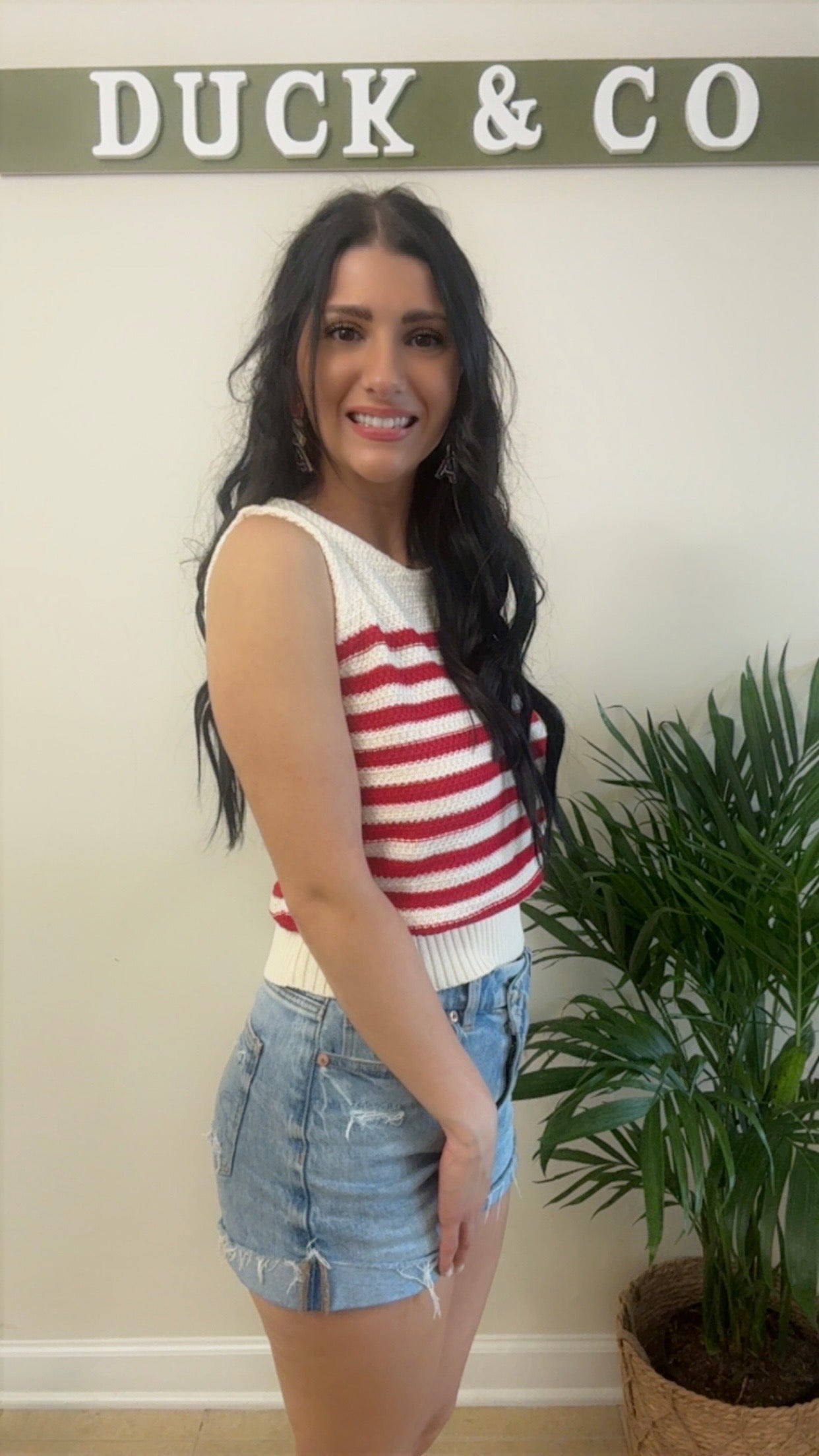 The Red Stripe Knit Tank is a must-have for any summer wardrobe. Made with a textured knit and ribbed hem design, this tank combines style and comfort. The classic red and white stripes add a playful touch, perfect for Memorial Day or 4th of July! But also versatile enough to wear for any occasion.