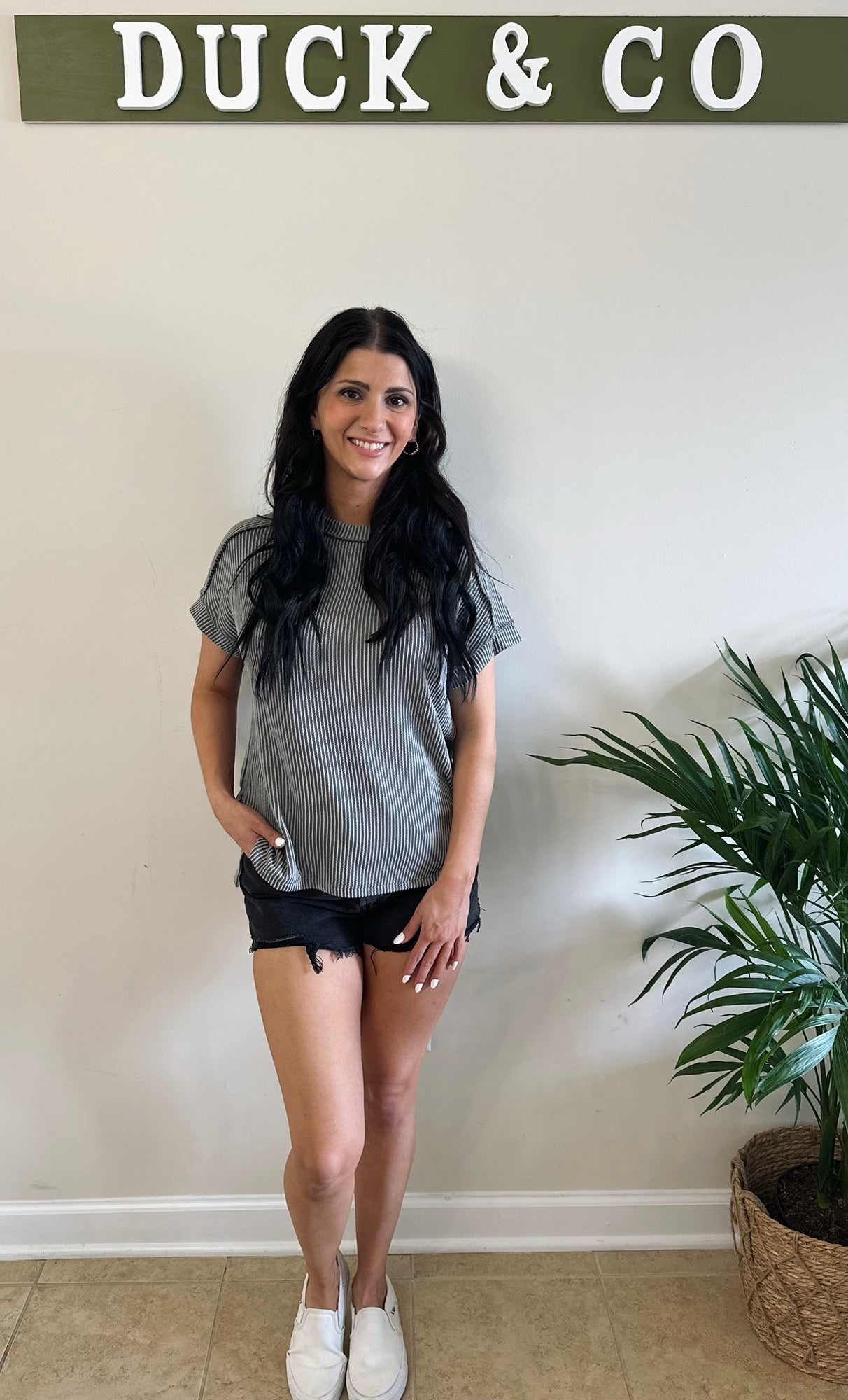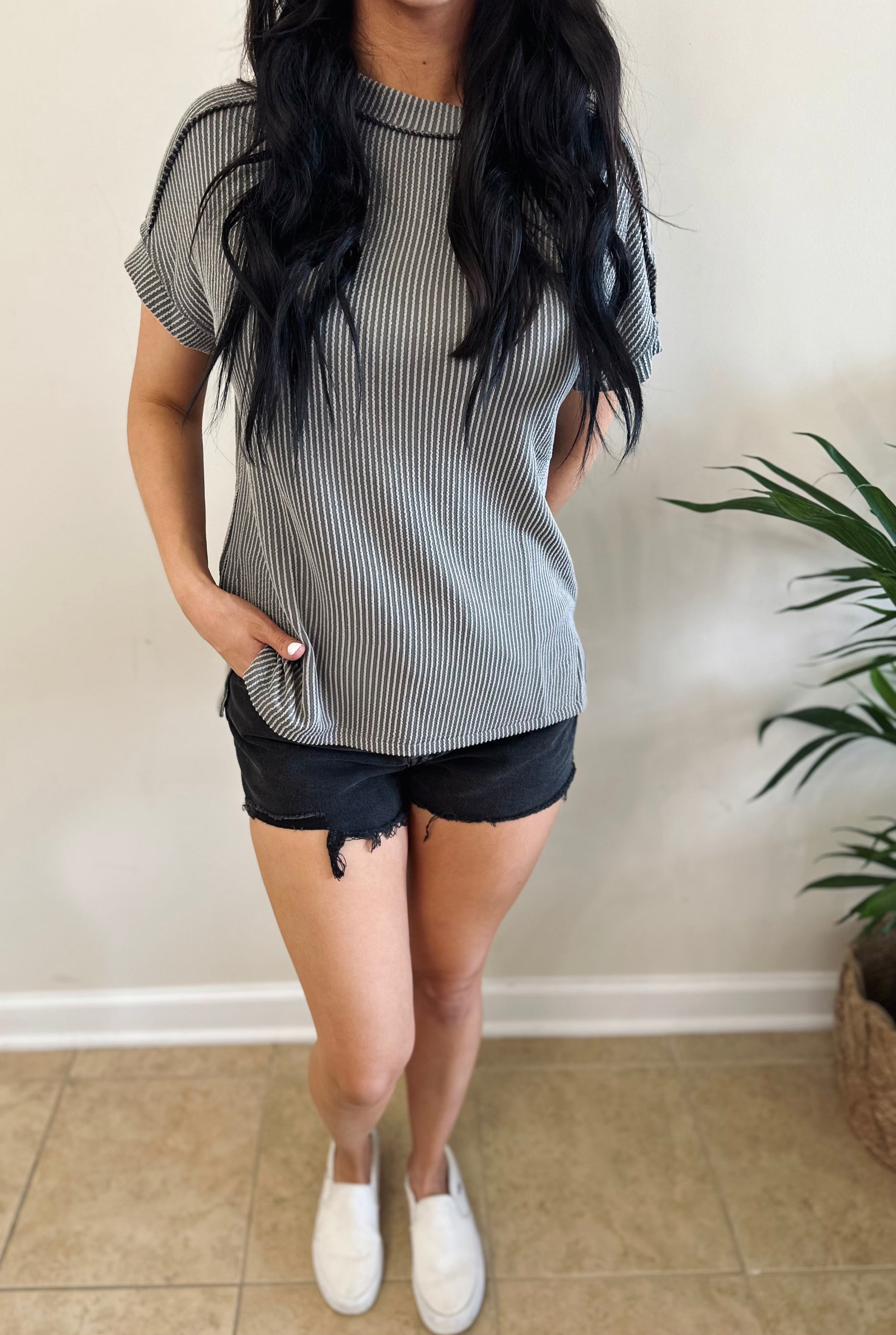 This playful tee features exposed stitching for a unique twist. Designed with a classic round neck, short sleeves and regular fit, it provides all-day comfort and versatility. Perfect for pairing with pants or shorts, this tee is a must-have for any outfit!