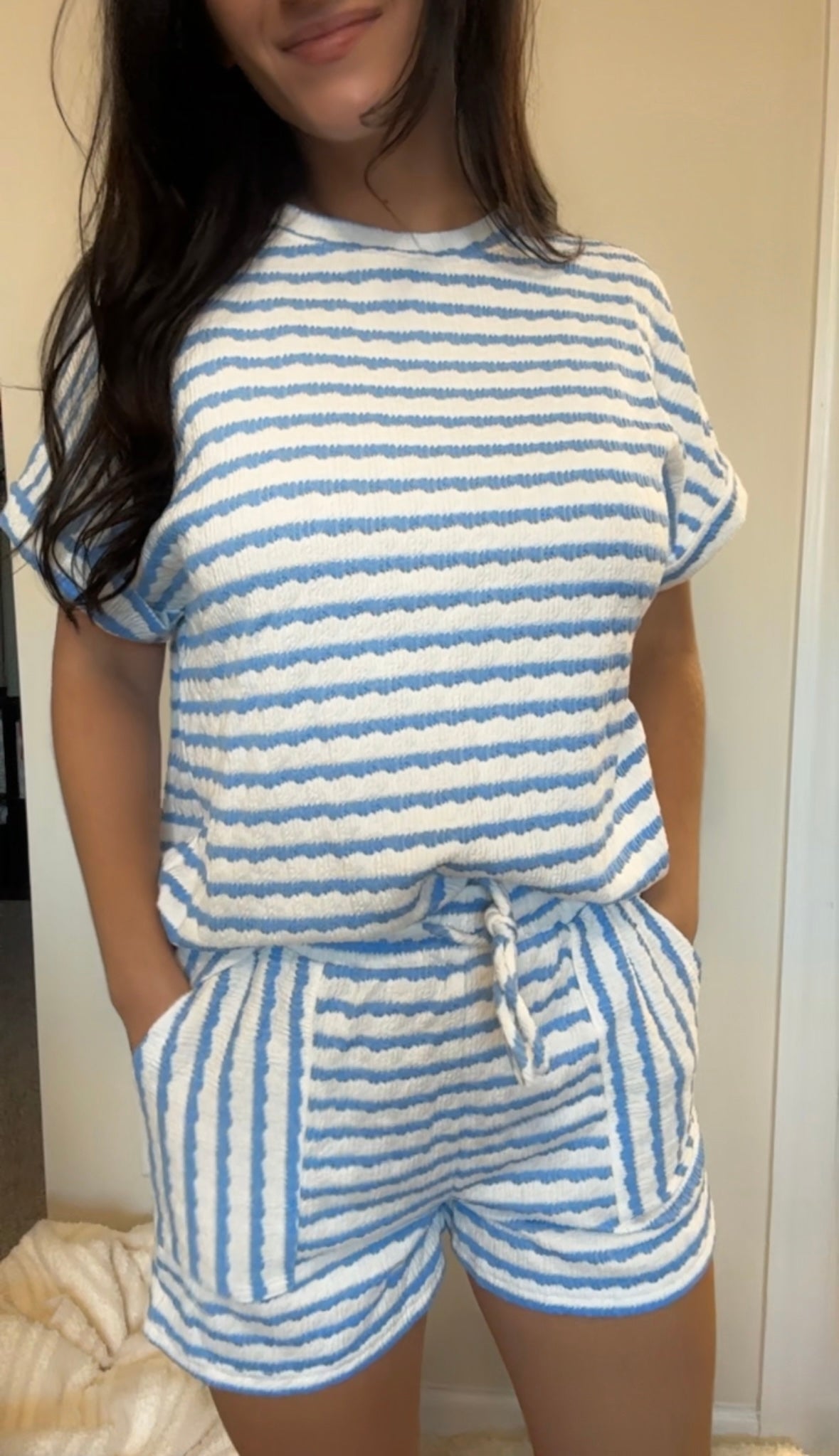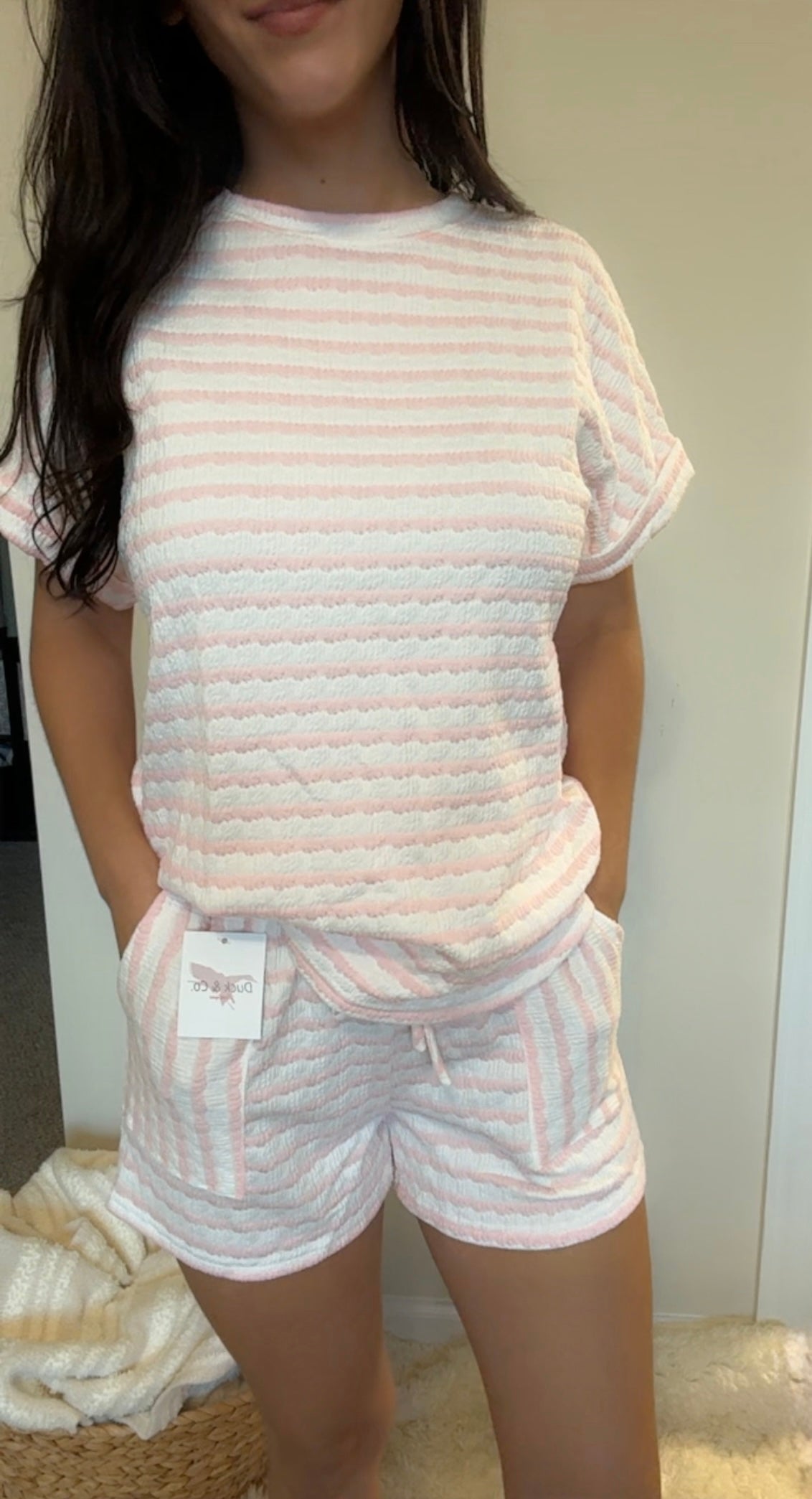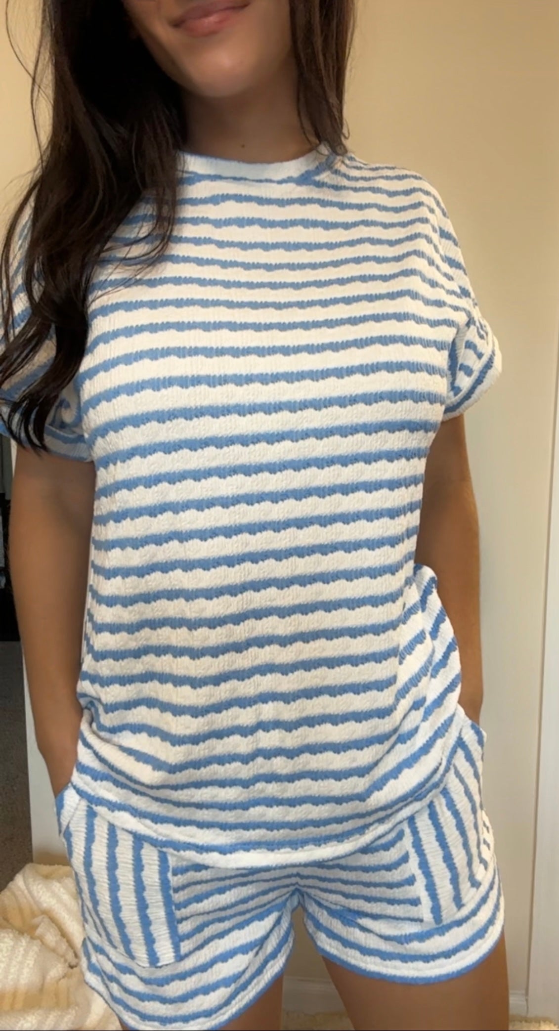 This Weekender Two Piece Set offers a stylish striped design that combines comfort and versatility. Made from high-quality materials, this set is perfect for any casual outing or weekend getaway. Upgrade your wardrobe with this trendy and functional set.