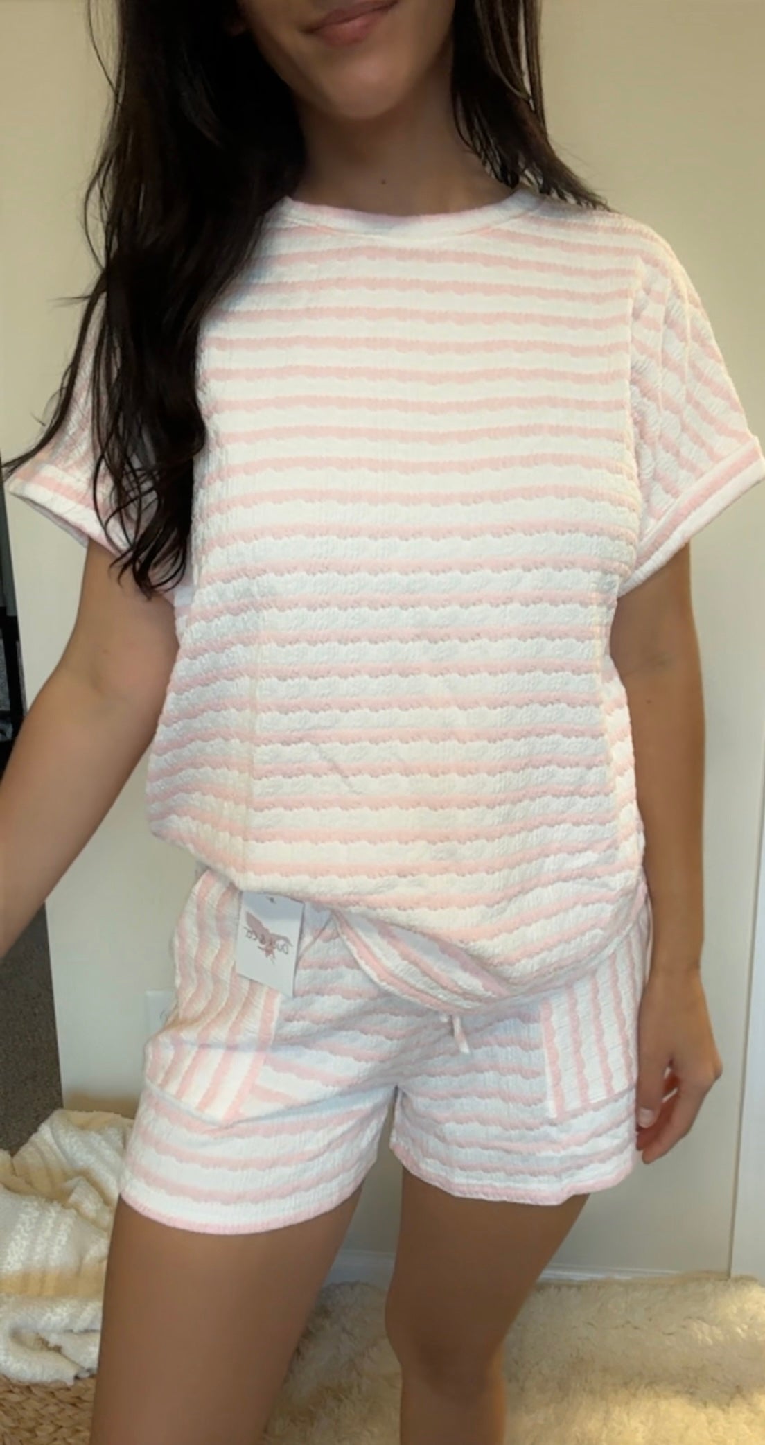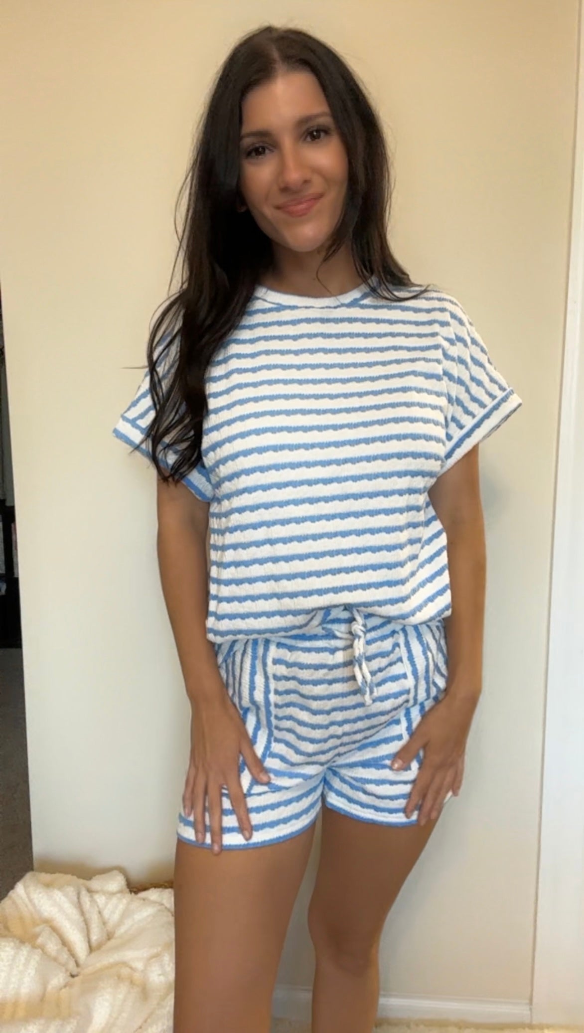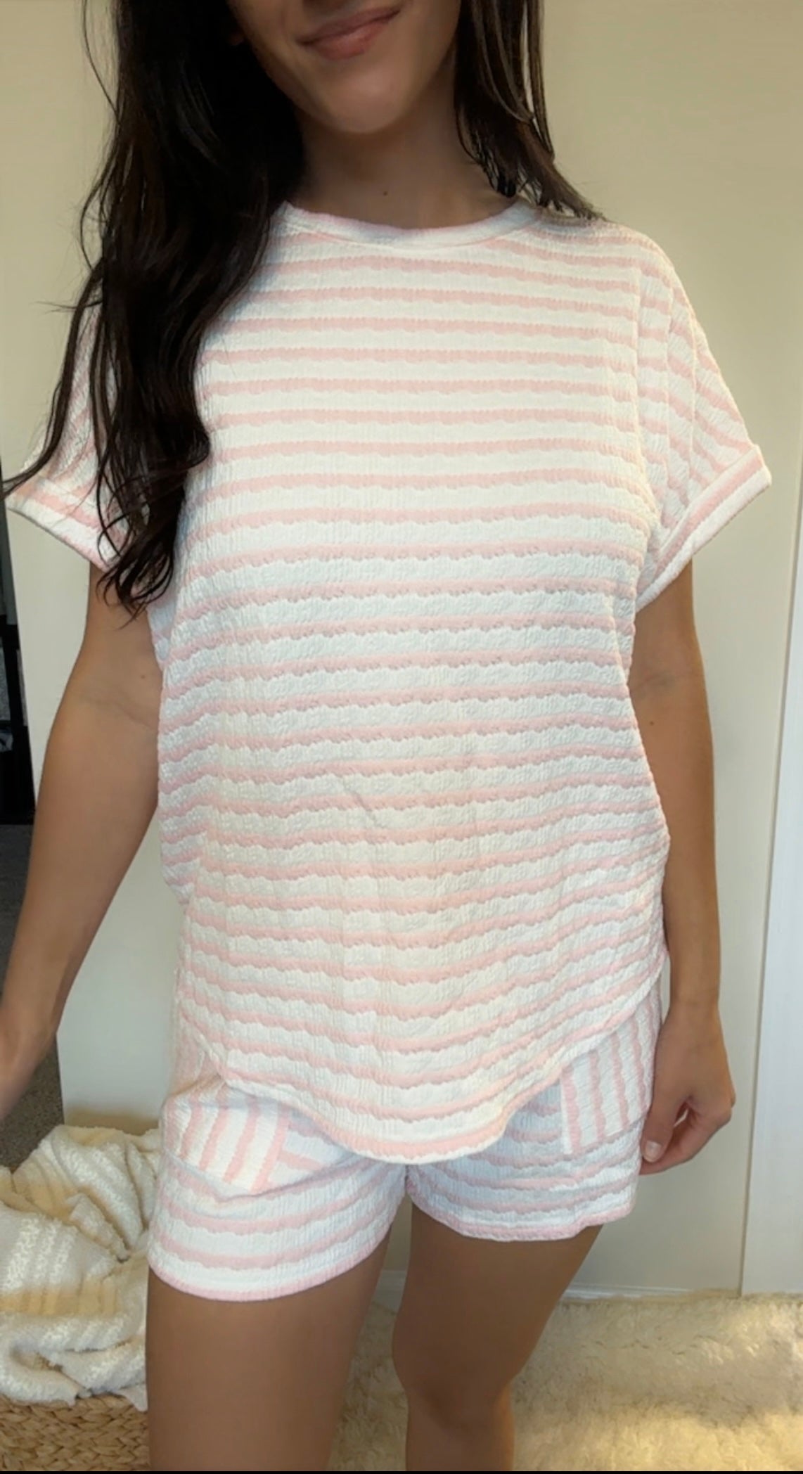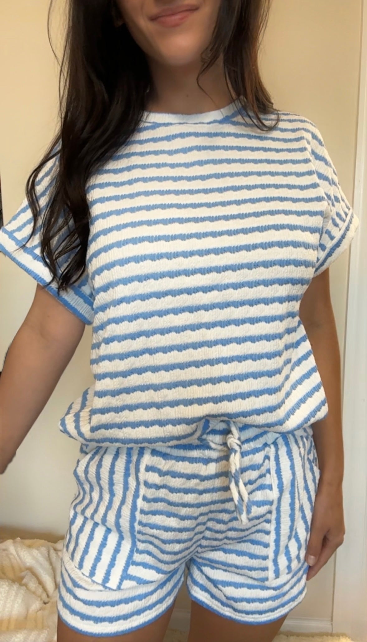 This Weekender Two Piece Set offers a stylish striped design that combines comfort and versatility. Made from high-quality materials, this set is perfect for any casual outing or weekend getaway. Upgrade your wardrobe with this trendy and functional set.